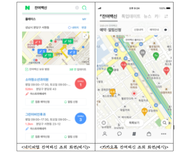 아스트라제네카 백신 접종을 권장하지 않는 30세 미만 (1992년 1월 1일 이후 출생자)입니다. 네이버ㆍ카카오 앱으로 잔여백신 당일 예약하세요!새글. 내일부터 네이버·카카오 앱에서 '잔여백신' 당일예약 가능. 국민비서 서비스 기관인 네이버, 카카오의 지도 플랫폼을 활용해, 편리하게 잔여백신 조회하고, 당일 예방접종을 예약할 수 있는 것이다. 잔여백신 정보를 한눈에 확인 가능한 네이버의 '우리동네 백신알림 서비스'는 ▲네이버앱 ▲네이버지도앱 ▲네이버 모바일웹에서 이용 가능하다.